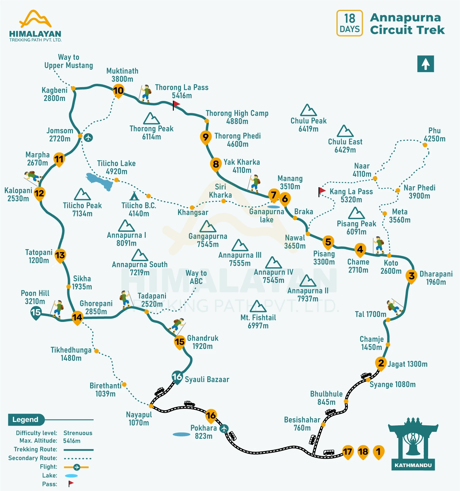 - Airport Tansportation: Experience a seamless airport pickup service with the Annapurna Circuit Trek Package upon your arrival. Our dedicated airport team will be waiting for you, holding a name card and the Himalanaya trekking path board, ready to assist you. Please locate your name card and meet our team. Following Nepali customs, you will be warmly welcomed with a marigold garland before being escorted to a private car that will transfer you to your designated hotel. Once you have completed your journey on the Annapurna Circuit Trek, the package ensures a hassle-free airport drop-off in a private vehicle. As a gesture of our gratitude, we will present you with a Khada to wish you a safe and prosperous journey. We eagerly anticipate the opportunity to host you again. Namaste!