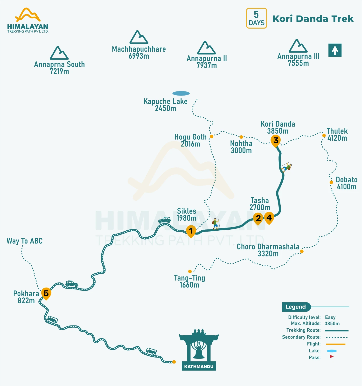 The Kori Himal Trek with Himalayan Trekking Path is affordable and ideal for short holiday seekers who wish to explore the hidden beauty of the Annapurna region. This off-the-beaten-path trek offers breathtaking views of Annapurna, Machhapuchhre, Lamjung, and Manaslu ranges while immersing trekkers in pristine landscapes, rhododendron forests, and authentic Gurung villages. The package cost starts from USD 300 to USD 400 per person, depending on the group size, duration, and level of service included. With Himalayan Trekking Path, the cost covers essential trekking services such as permits, an experienced guide, accommodation, meals during the trek, and necessary arrangements for a comfortable journey. Our team ensures the best value by providing authentic cultural experiences, safe trails, and personalized services. Book your Kori Himal Trek with Himalayan Trekking Path to enjoy a budget-friendly yet memorable adventure in one of Nepal’s most peaceful and untouched trekking destinations. The Breakdown cost of the Kori Trek is mentioned below.