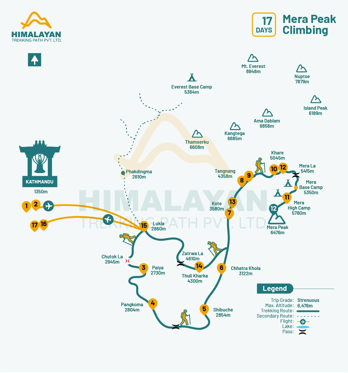 Himalayan Trekking Path Pvt. Ltd. is recognized as one of the best local operators for Mera Peak Climbing, known for its 99% success rate, reasonable pricing, exceptional guest satisfaction, strong safety standards, and highly professional trekking and expedition guides. With us, you will enjoy a well-designed Mera Peak Climbing package at a competitive rate, suitable for solo travelers, small groups, and larger teams. Please note that solo climbers may pay a higher cost compared to group bookings.