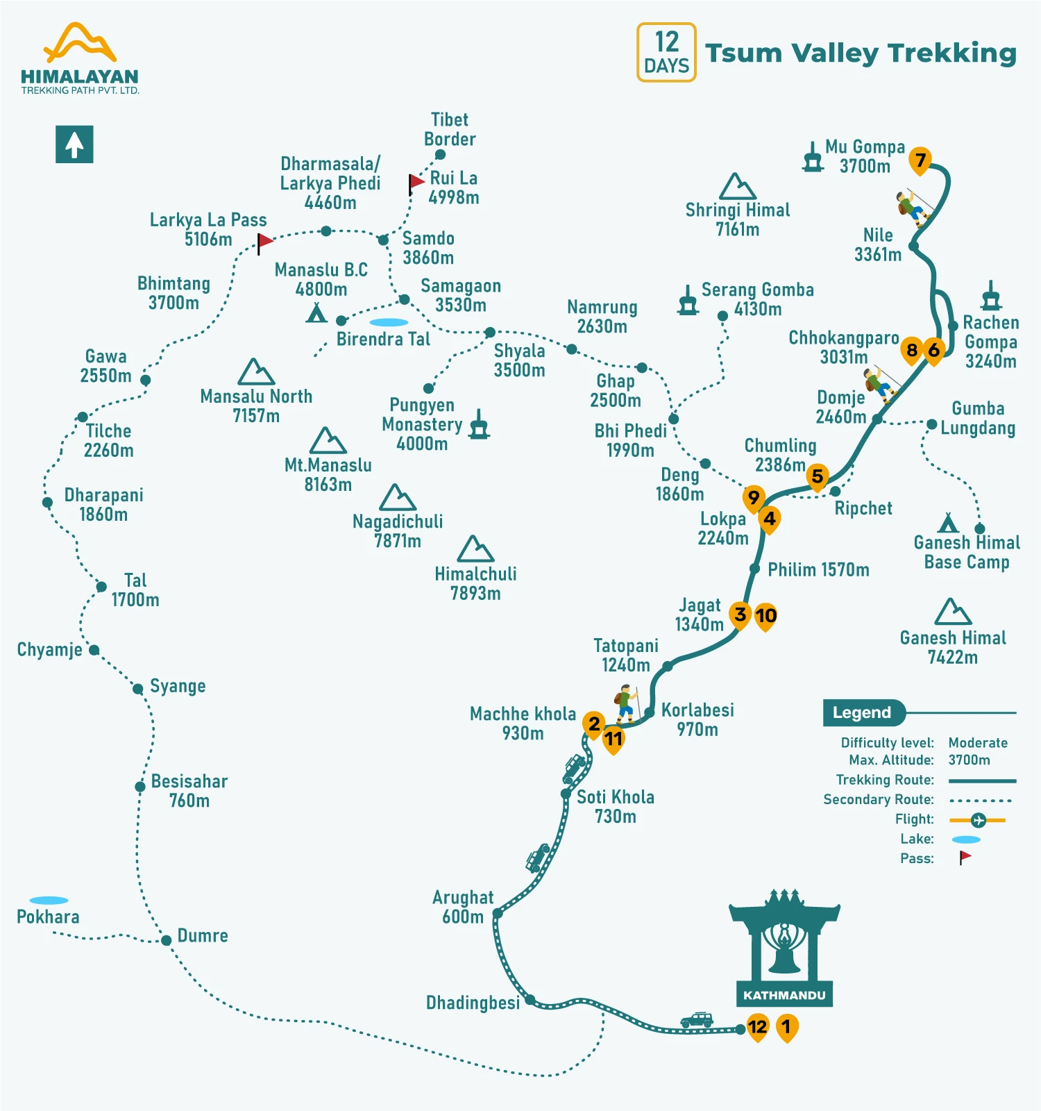 The Tsum Valley Trekking itinerary consists of a 13-Days itinerary including arrival and departure. However, the actual trekking days are 9 days. The Himalayan Trekking Path is a reliable local trekking agency that operates the Manaslu Trek in Nepal as the best-selling Trekking package. Therefore, you can contact our travel planners in advance so that we can prepare your restricted permit before your arrival. Our contacts ensure that you will get the restricted immigration permit upon arrival in Kathmandu. This will save us a day on the trip. The trip can be shortened by 2 to 3 days according to your physical fitness level. However, you need to be prepared for the long walking hours per day. If you wish to shorten the itinerary of the Tsum Valley Trekking, then you must have a very good physical fitness level. Be prepared to walk for about 7 to 8 hours a day in the high-altitude places where you have to walk on an uphill and downhill trail. This is so exhausting and requires immense physical abilities as well as a cardiovascular fitness level.