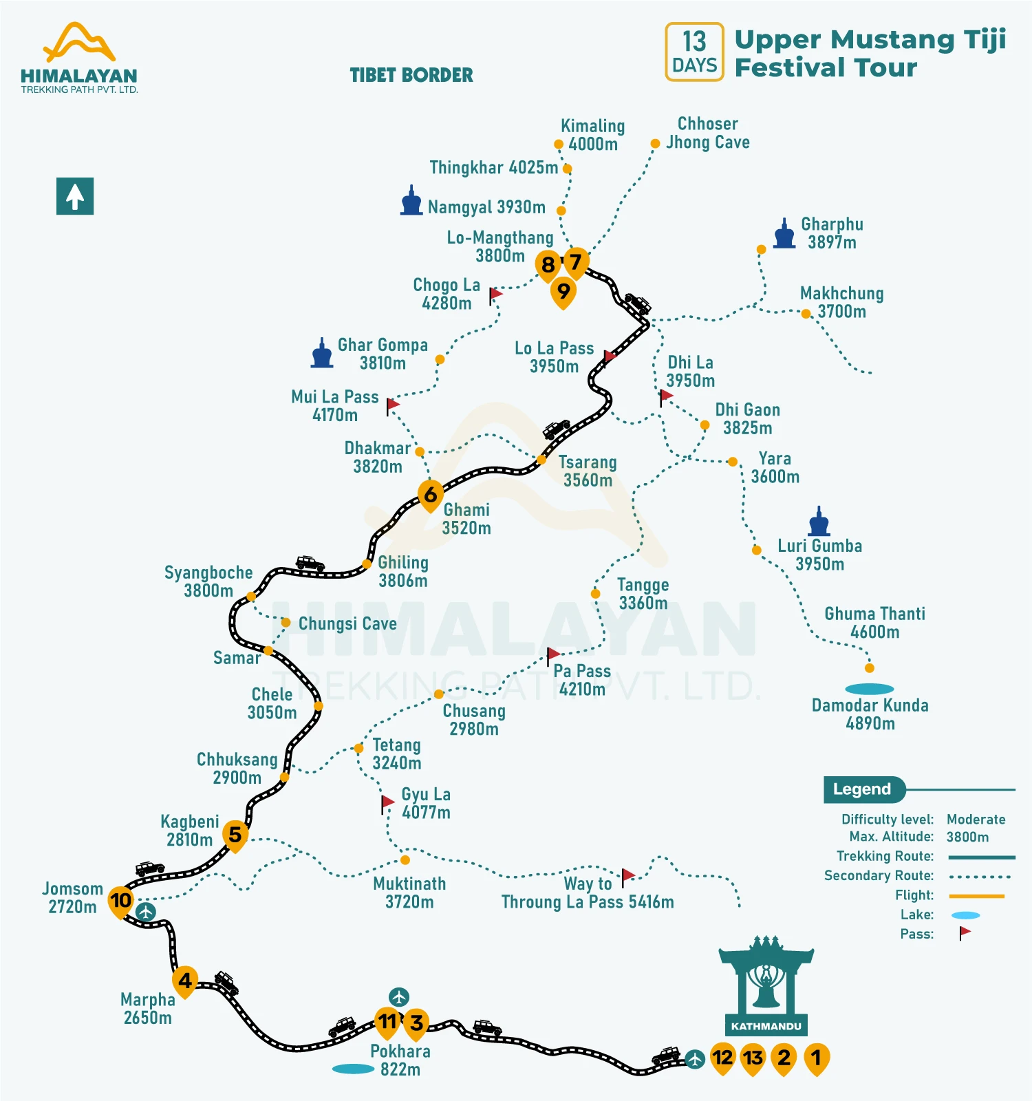 - Visit traditional villages including Chhusang, Chele, Samar, Syanboche, Geling, Ghami, Tsarang, and Chhoser Cave.